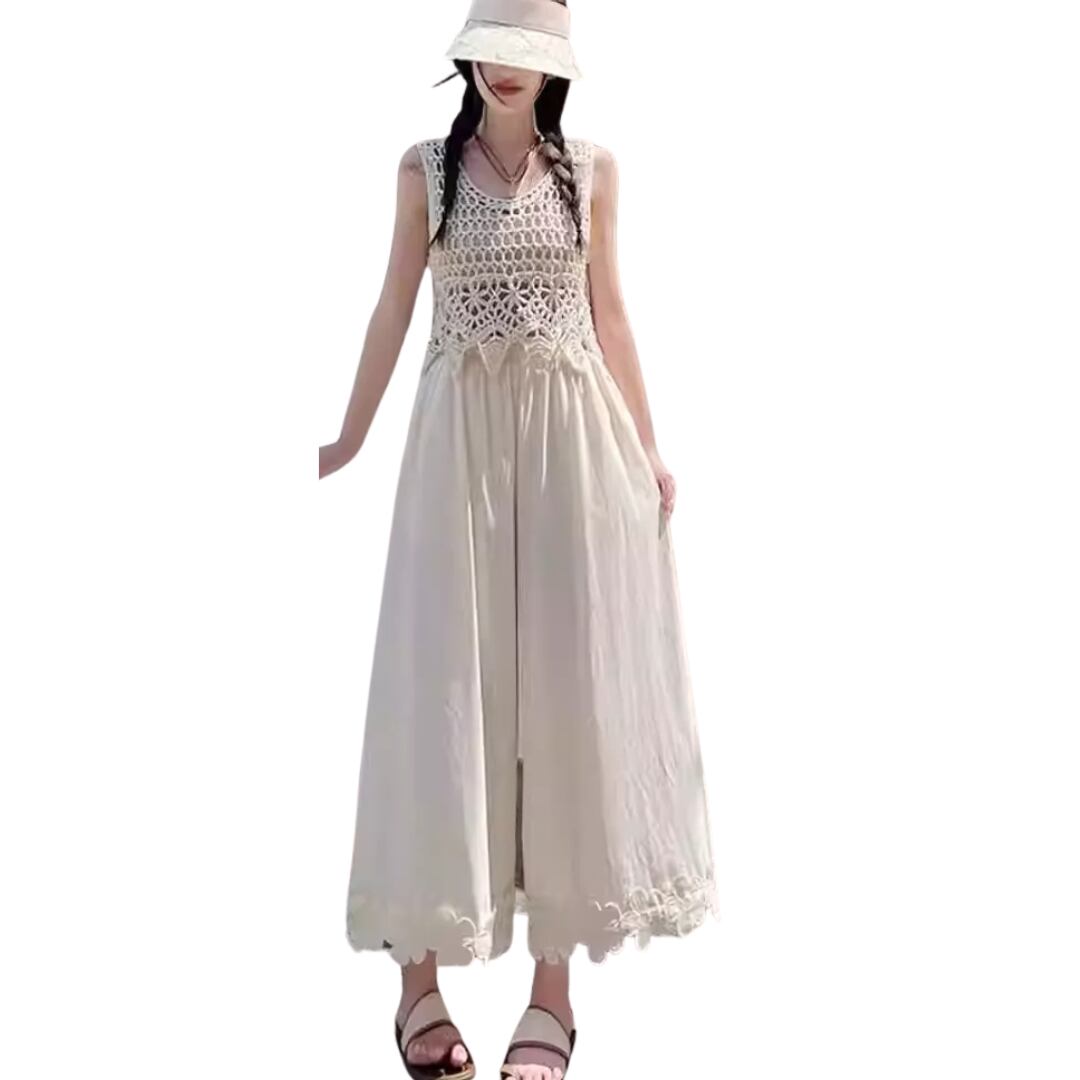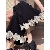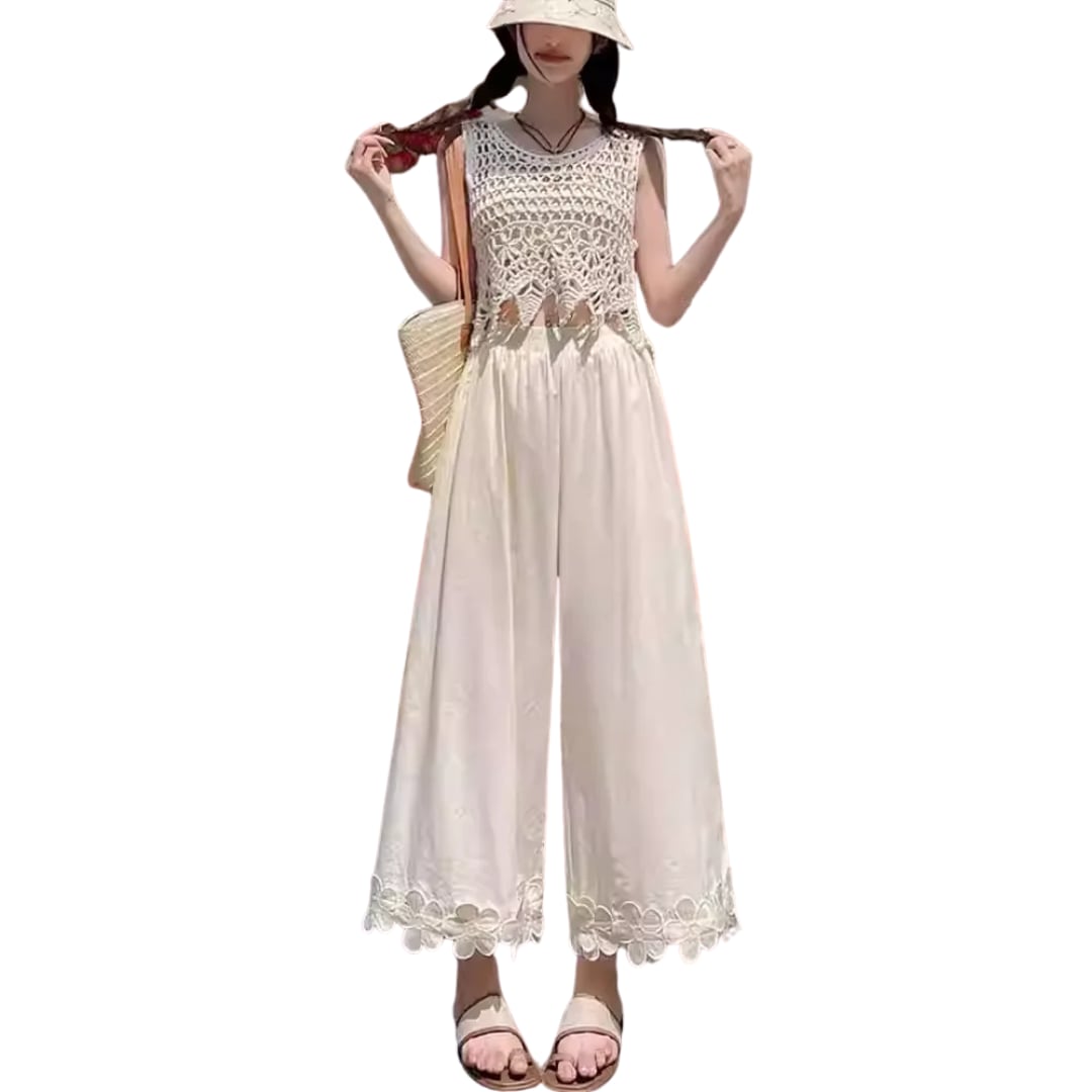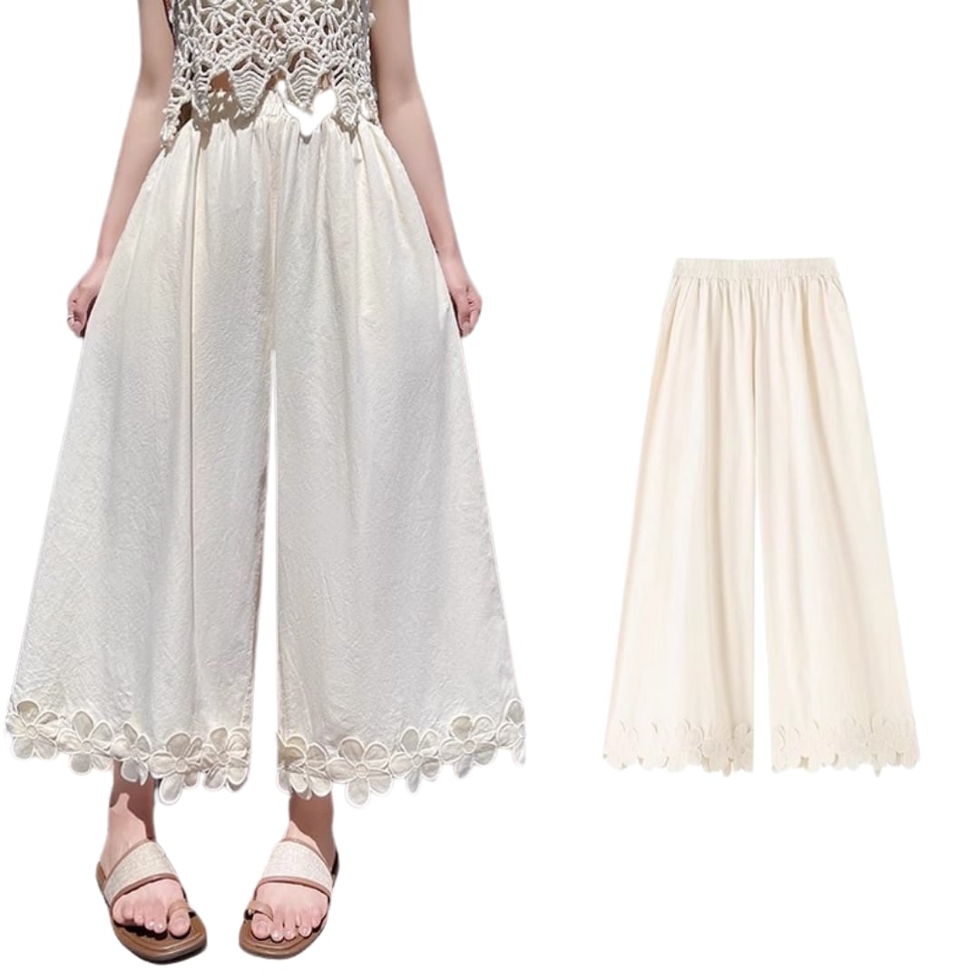 Floral Patchwork Ice Silk Wide-Leg Cropped Pants (CF004)