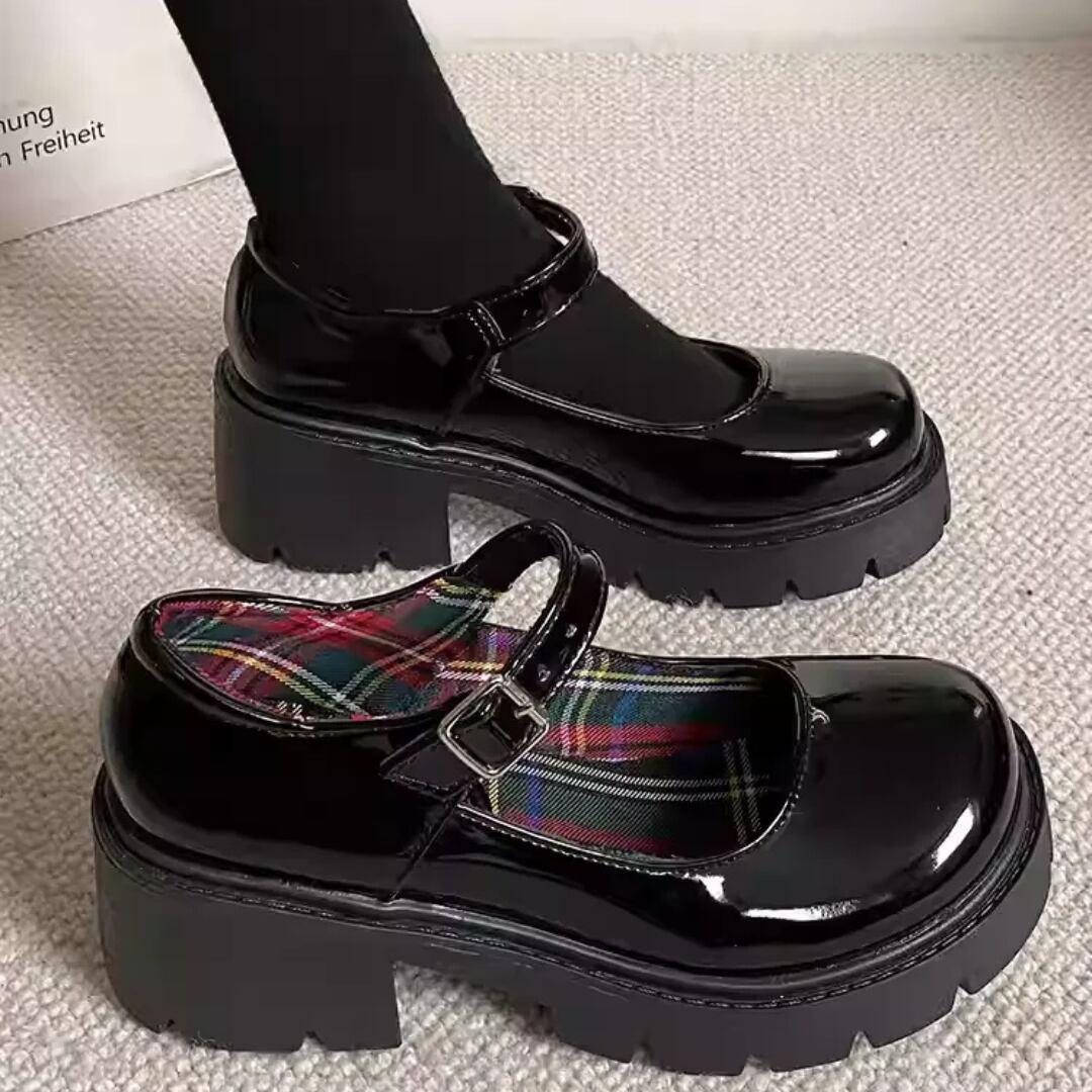 Mary Jane Platform Heels – Japanese JK Style Round-Toe Vintage Leather Shoes (CF026)