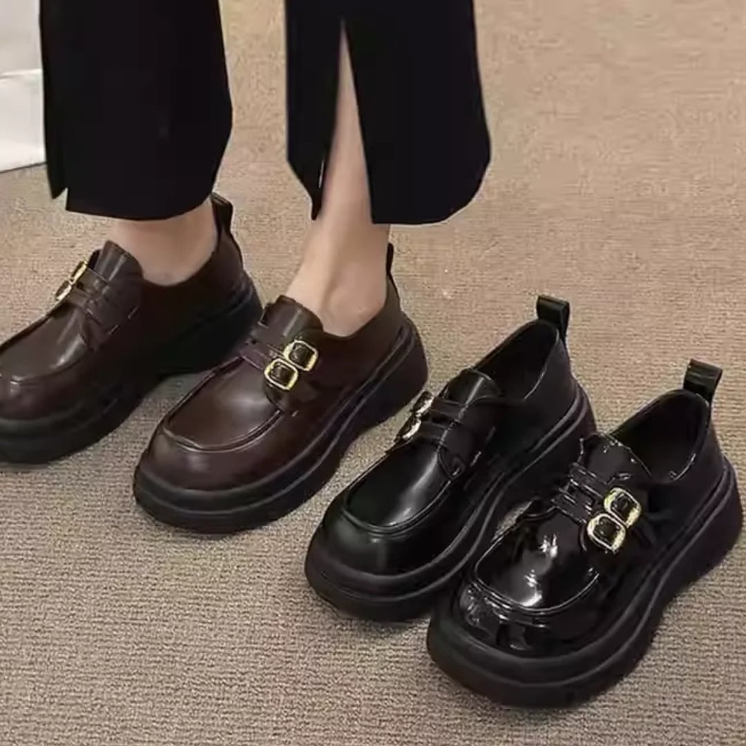 British Style Leather Shoes – New Vintage Round-Toe Loafers with Thick Soles (CF027)