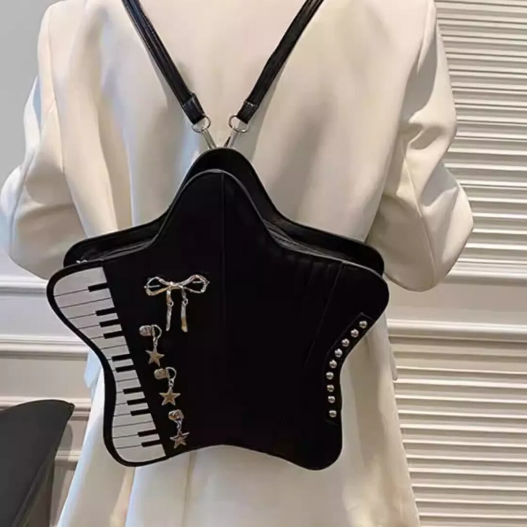 Piano Design Crossbody & Backpack with Star and Bow Details(CF042)