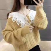 Spring Autumn Lace Peter Pan Collar Knit Sweater(CF052)