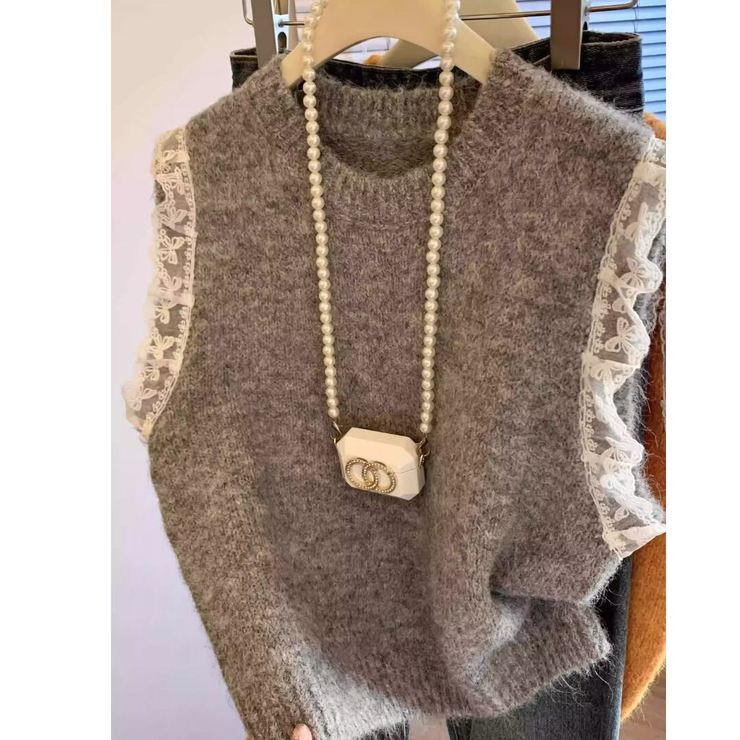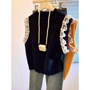 Vintage Lace Patchwork Sleeveless Knit Vest (CF056)