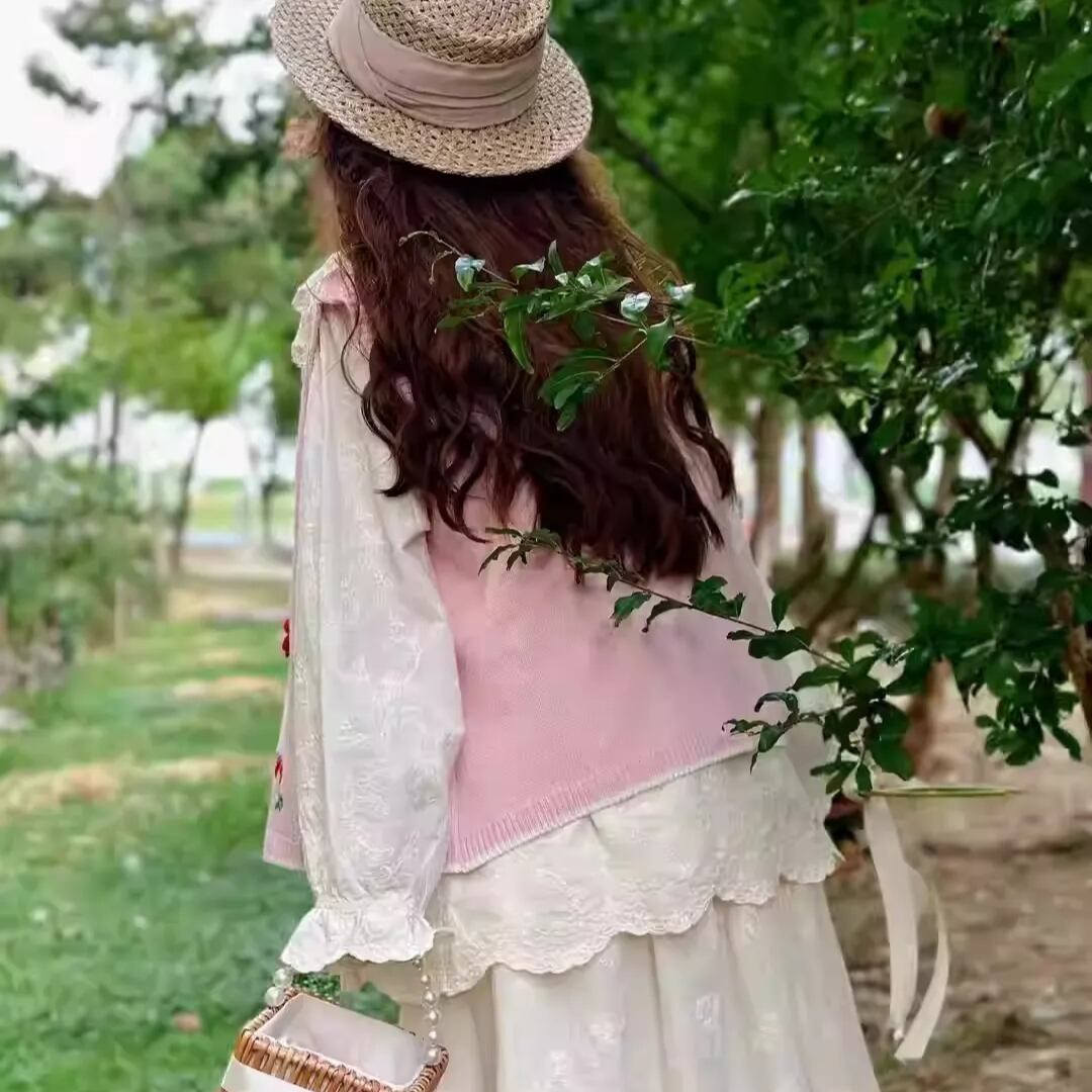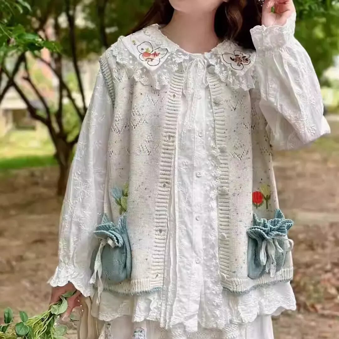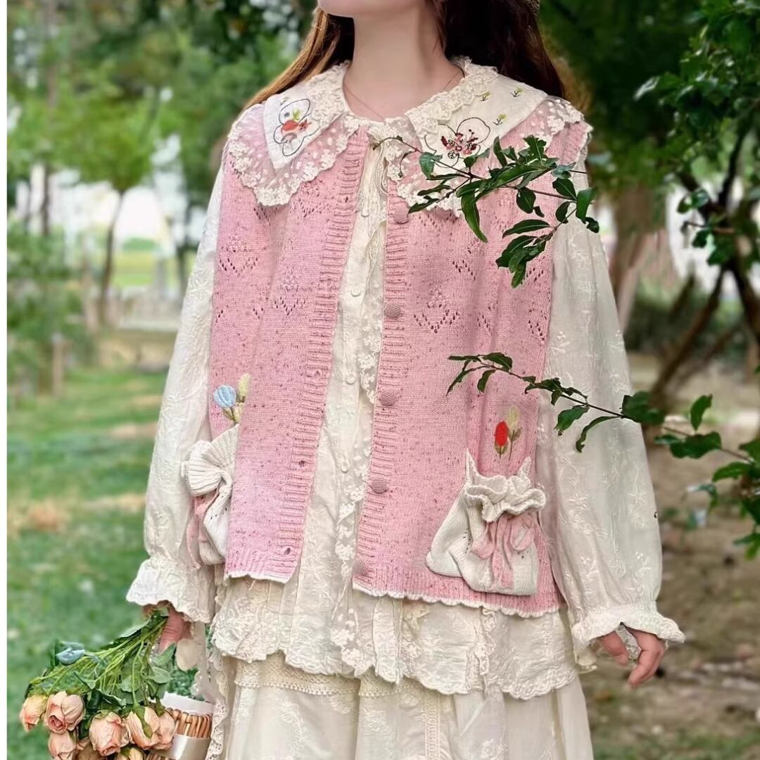 Sweet Mori Style Embroidered Knit Vest(CF060)
