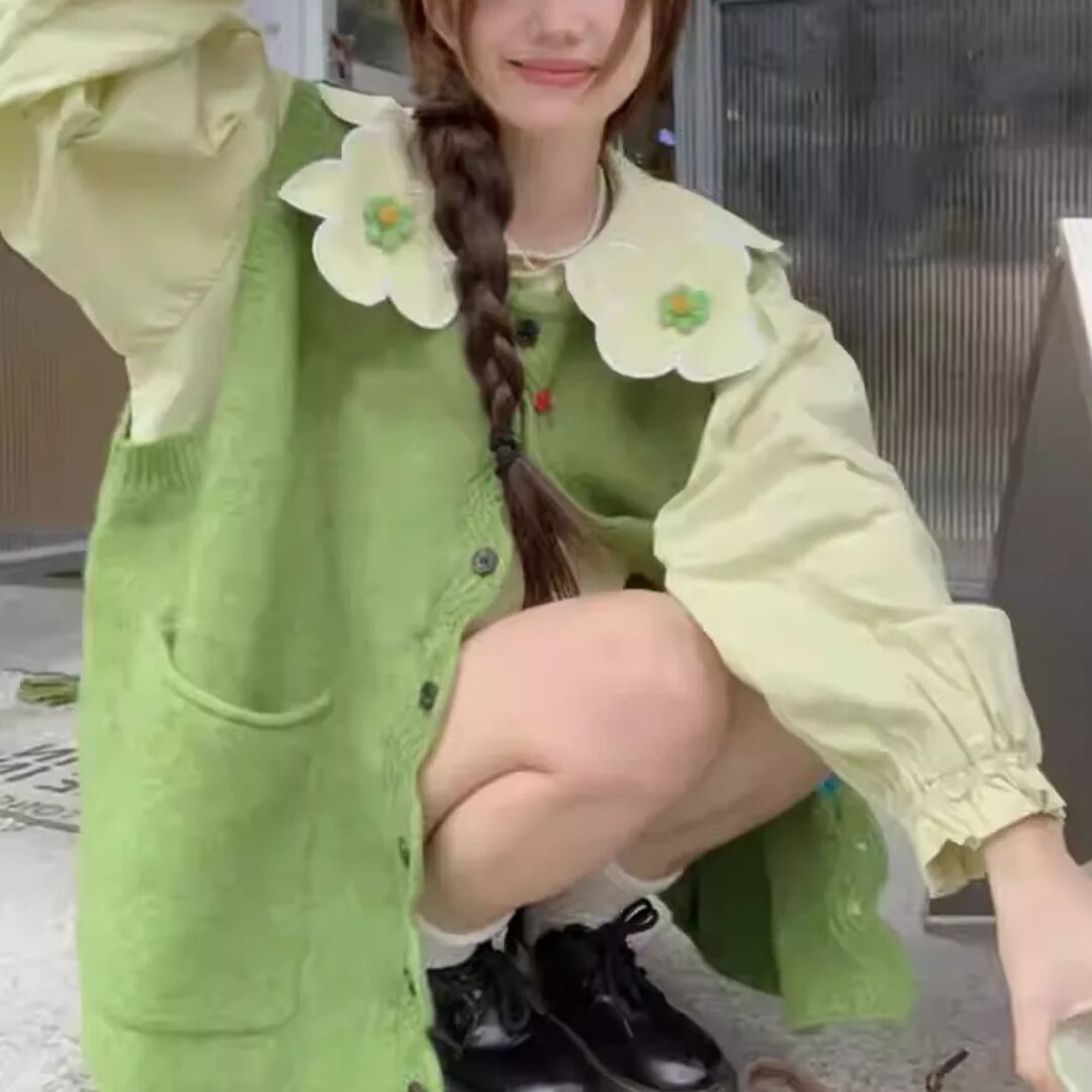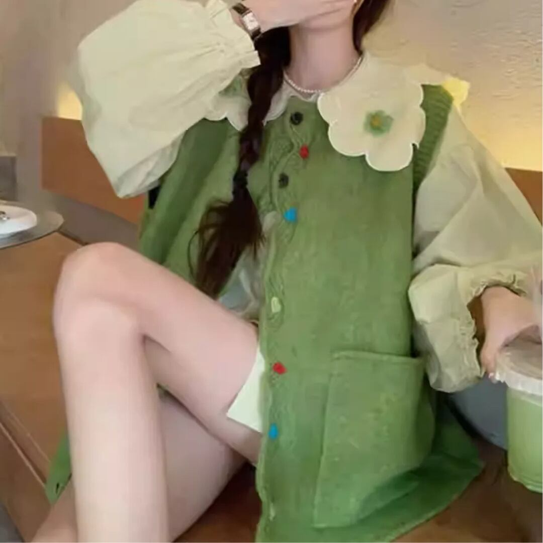 Loose Fit Solid Color Sweater with Colorful Buttons (CF061)