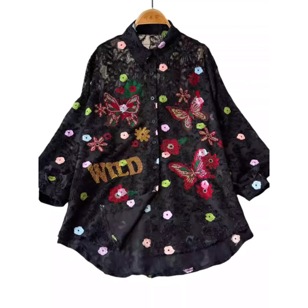 Retro Embroidered Blouse (CF066)