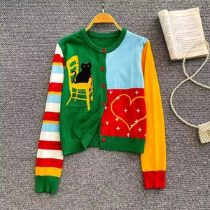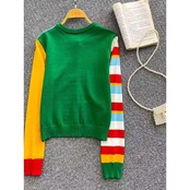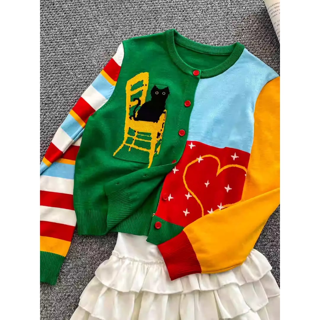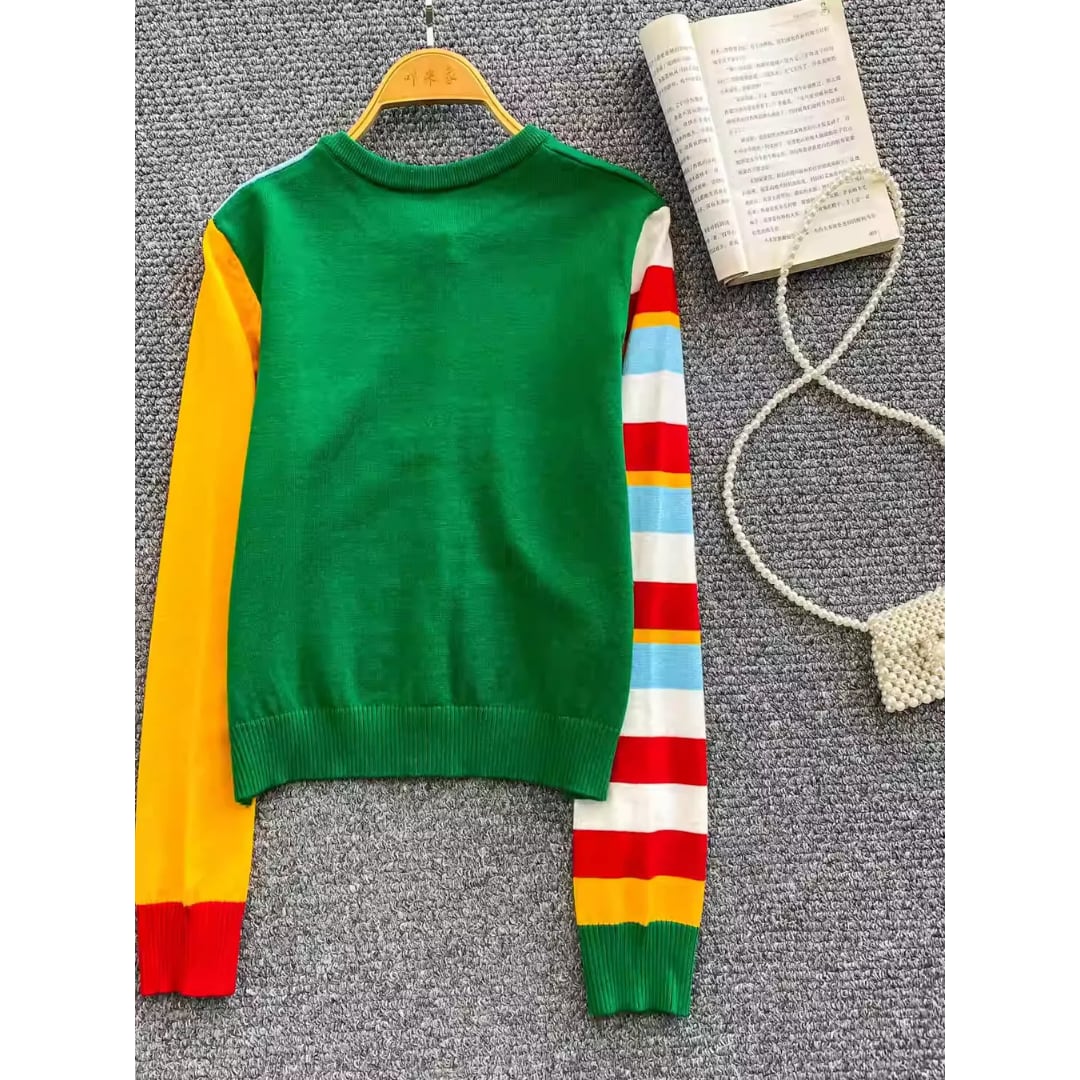 Sweet Dopamine Contrast-Color Embroidered Knit Sweater (CF068)