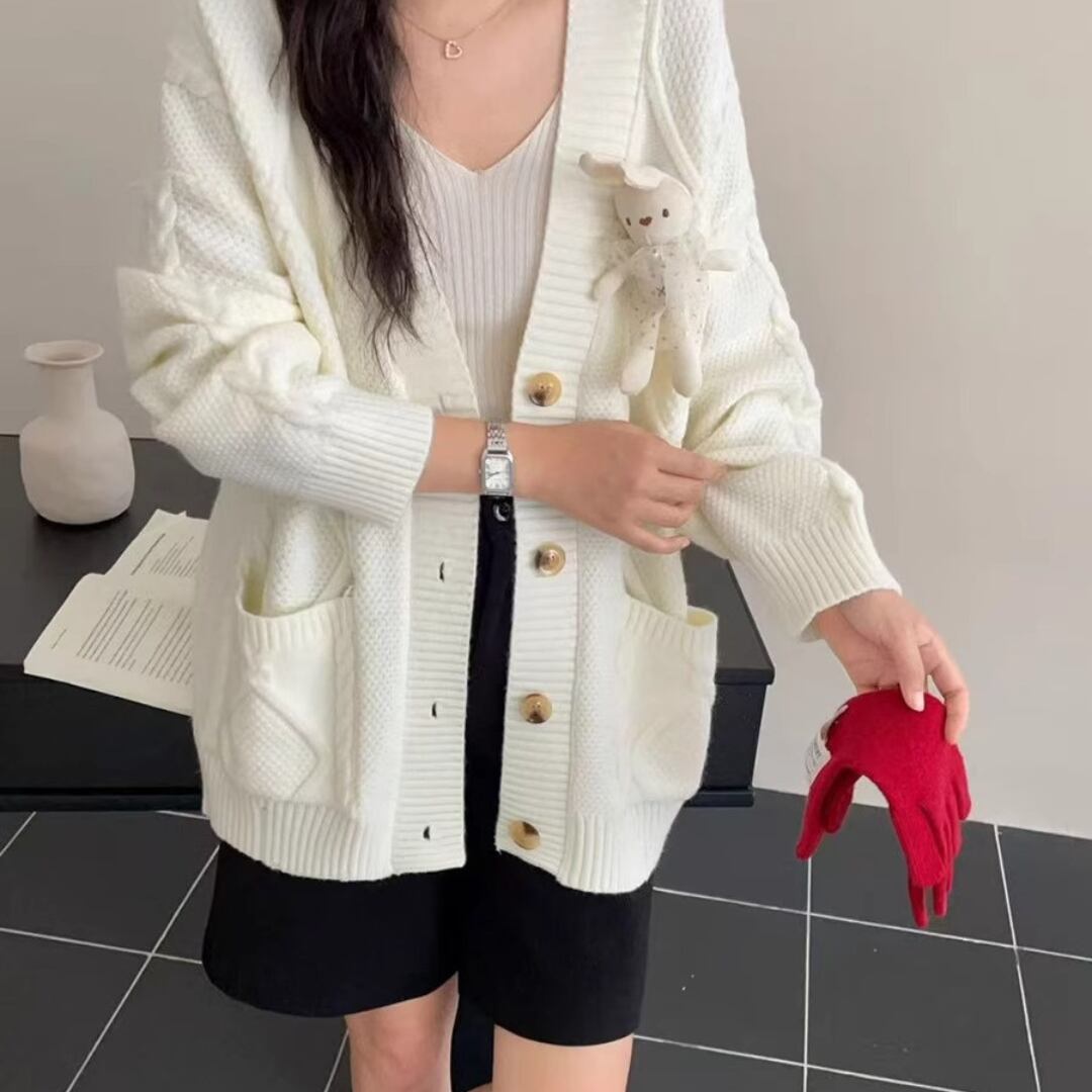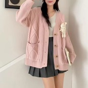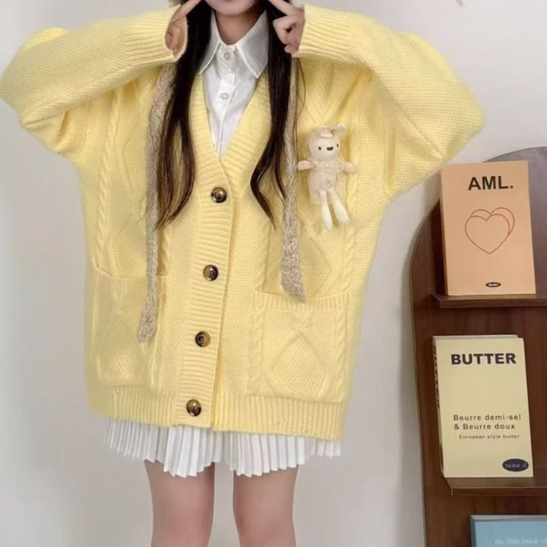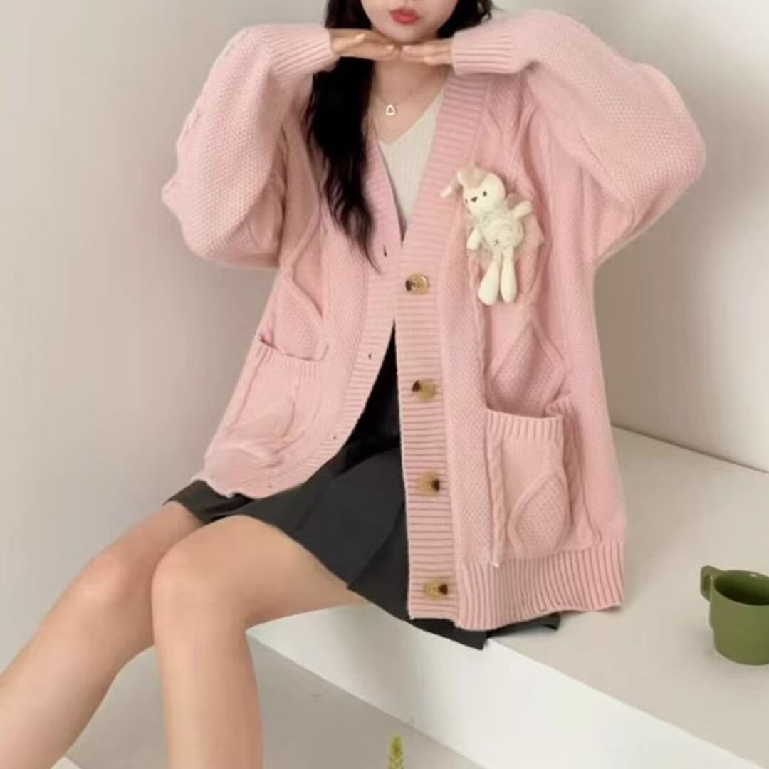 Loose Lazy-Style Plush Doll Knit Cardigan (CF075)