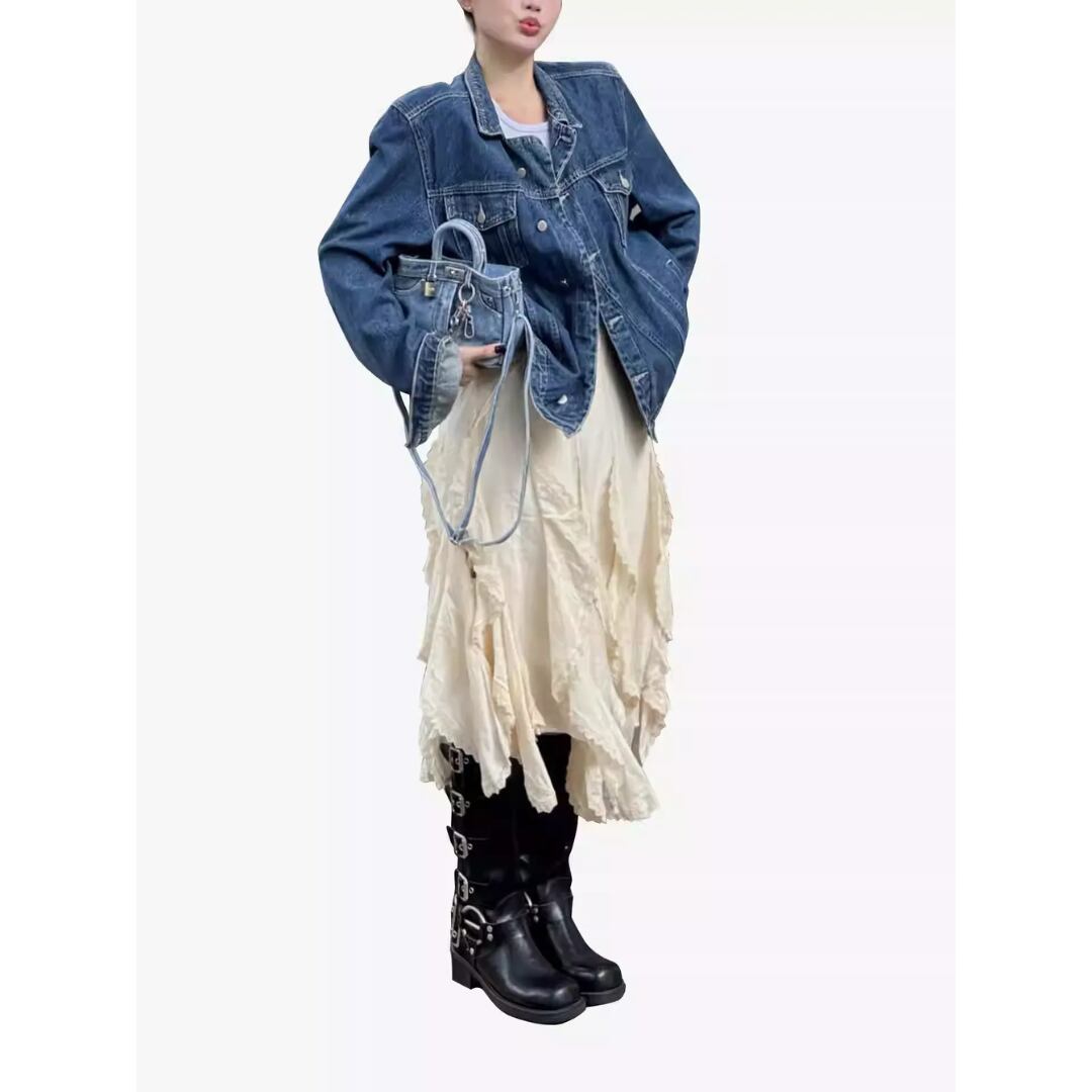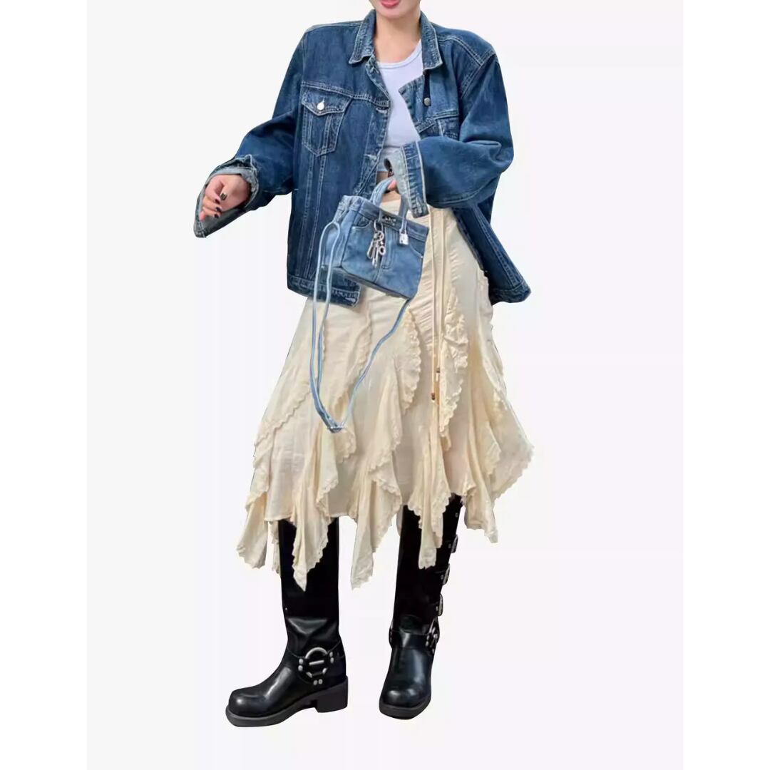 Tassel Lace A-Line Skirt – High Waist Asymmetrical Designer Skirt (CF087)