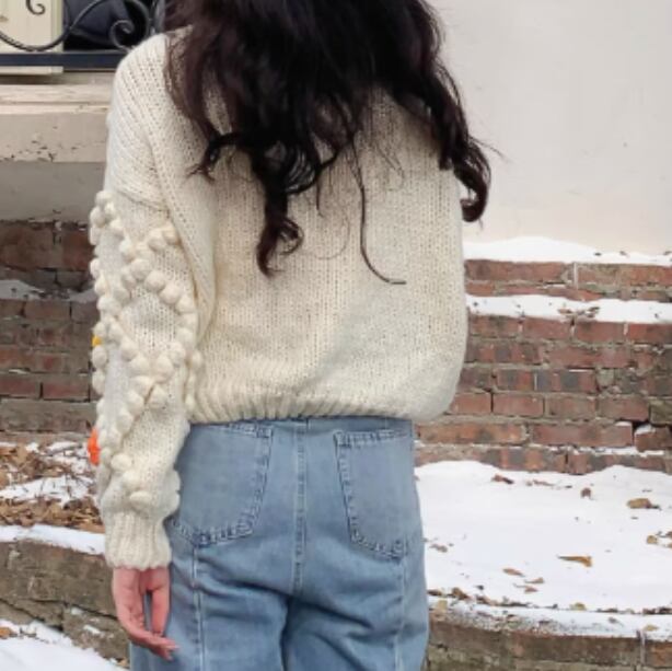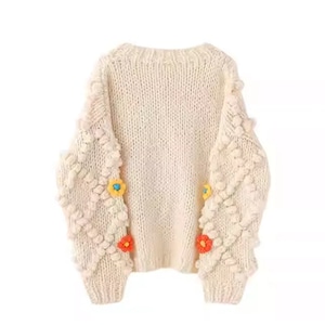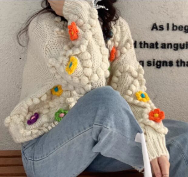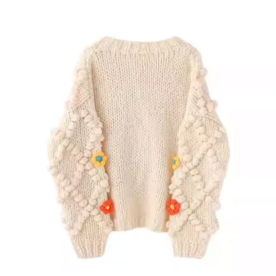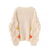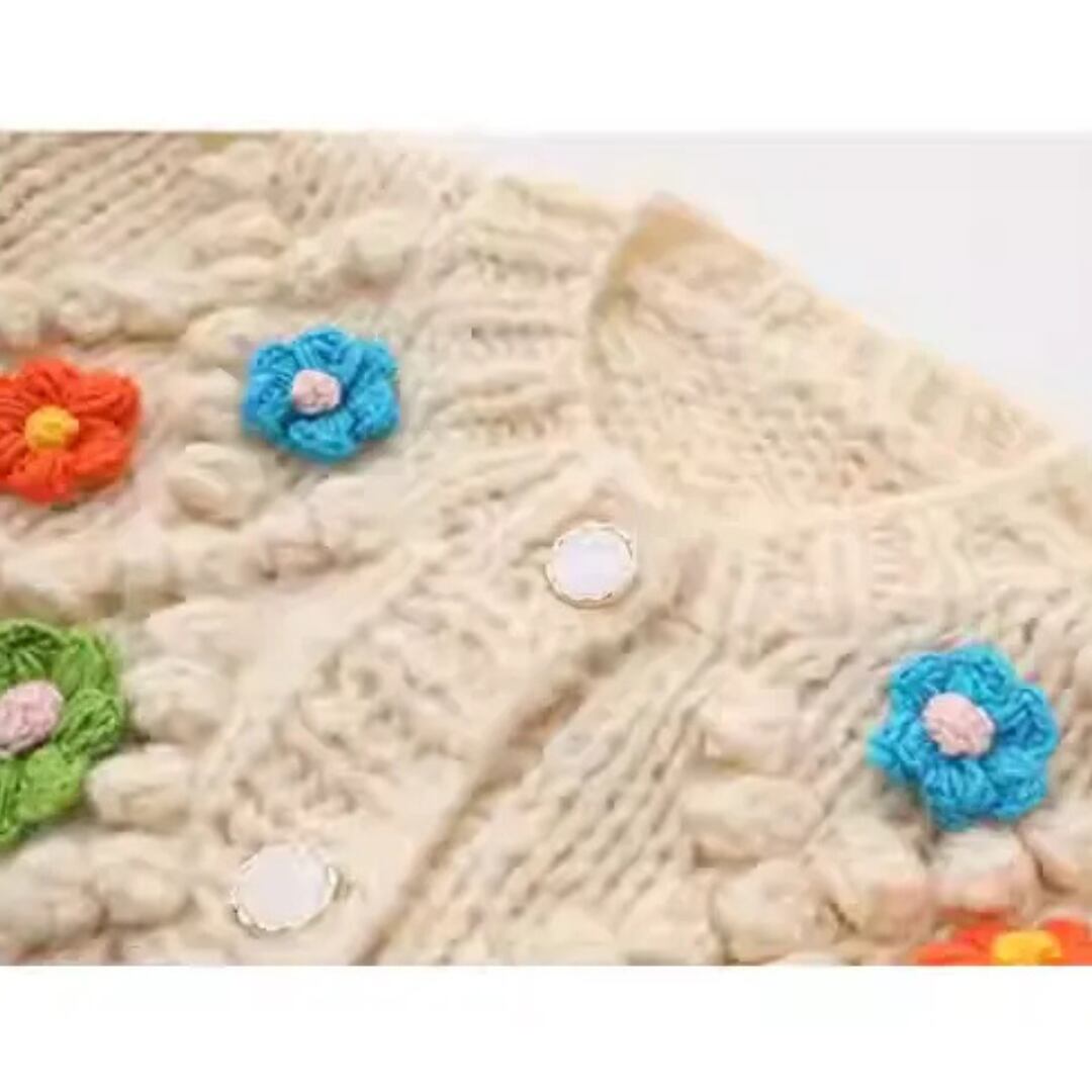 3D Floral Knit Cardigan – Apricot Embroidered Short Sweater (CF089)
