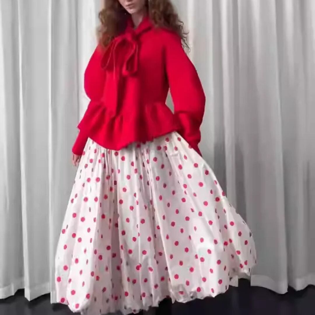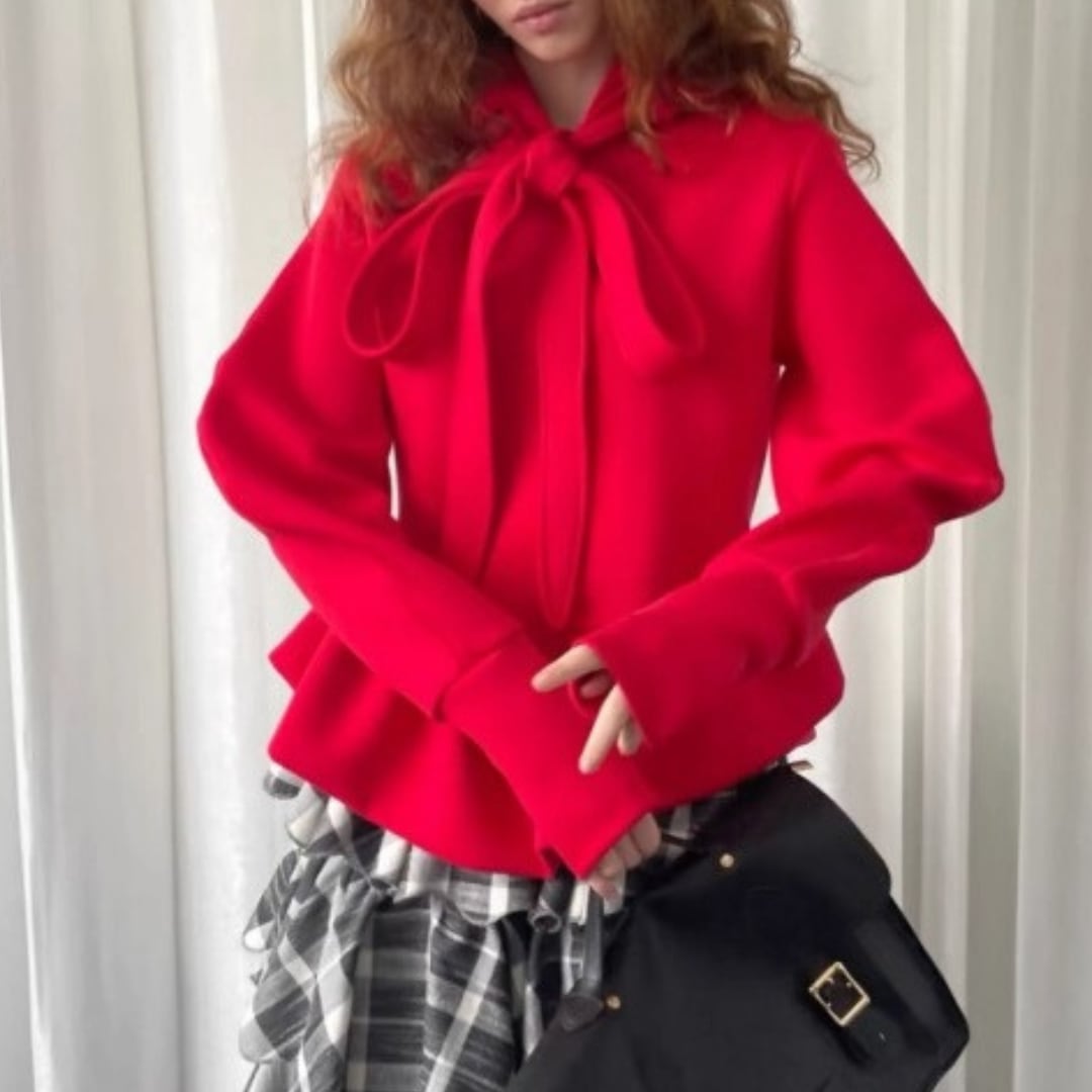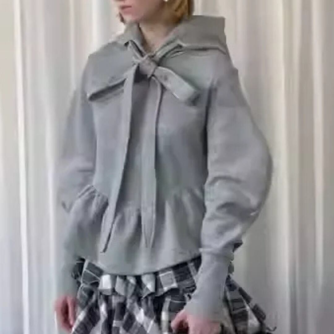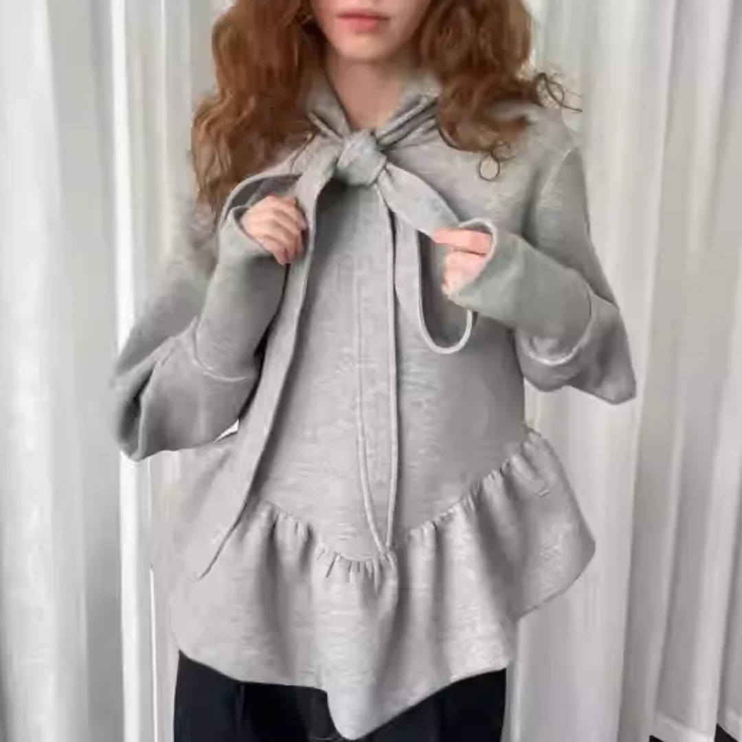 French Bow Sweatshirt – Designer Solid Top with Irregular Hem & Horn Sleeves (CF090)