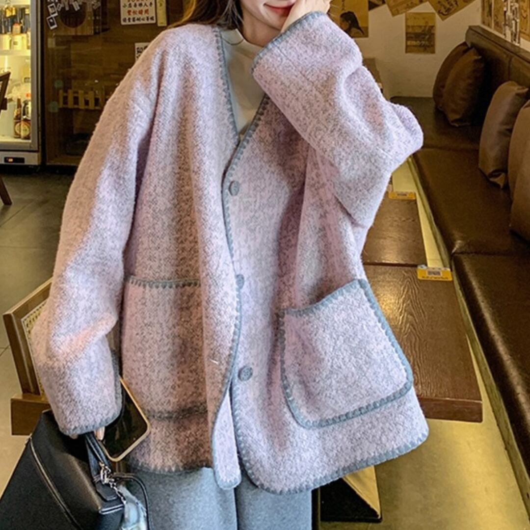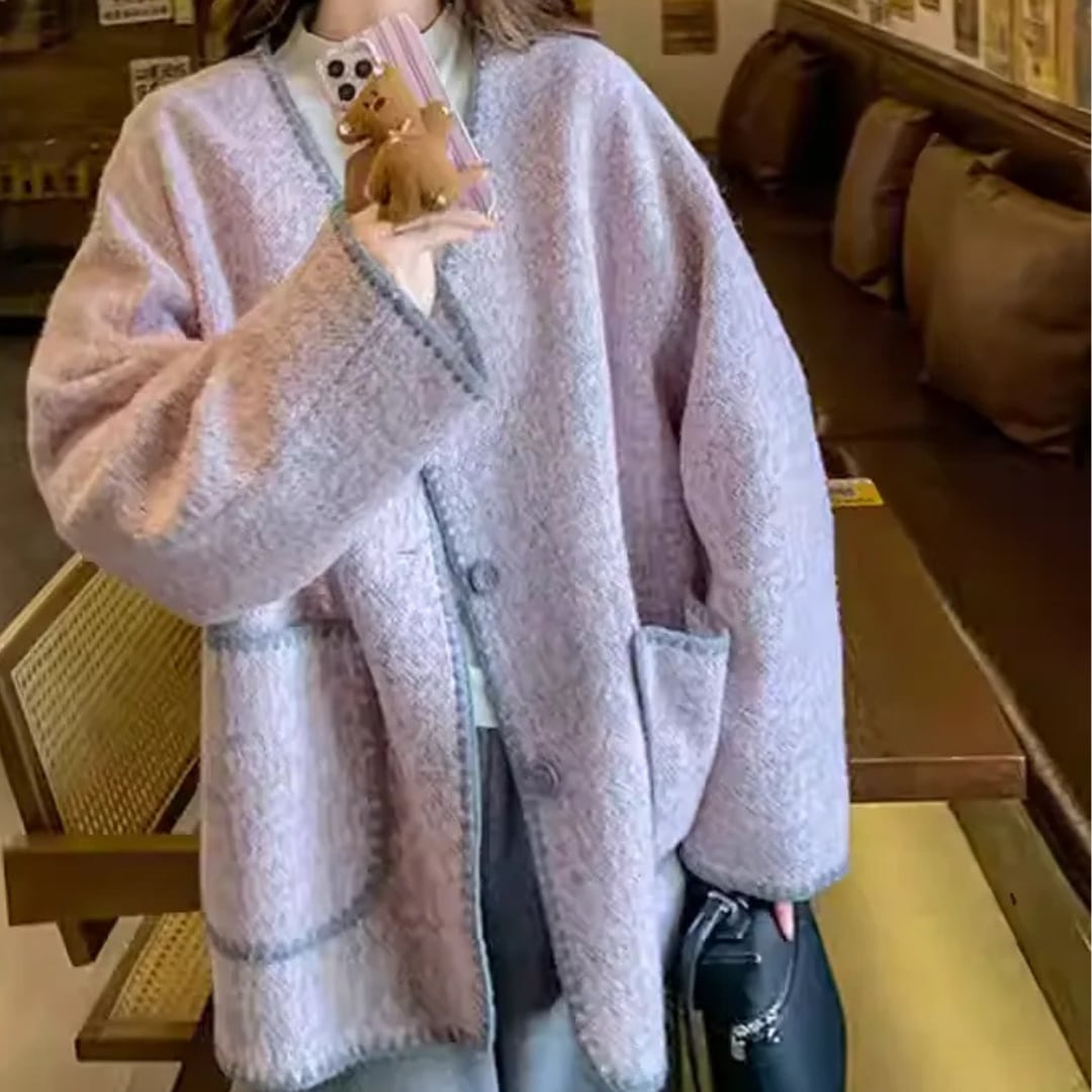 French Tweed-Style Pink-Purple Woolen Coat (CF097)