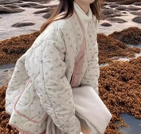 Retro floral reversible cotton coat(CF107)