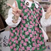 Floral color block casual loose sweater(CF145)