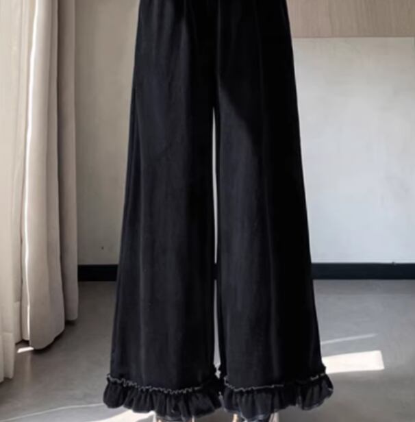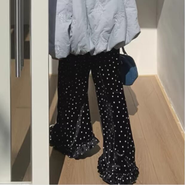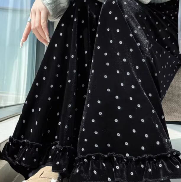 Daisy patterned fleece-lined thick velvet pants(CF126)
