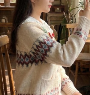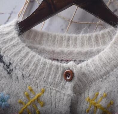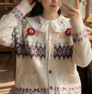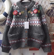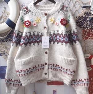 3D Crochet Jacquard Loose Round Neck Knit Cardigan(CF150)