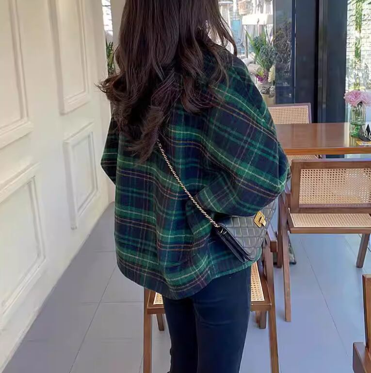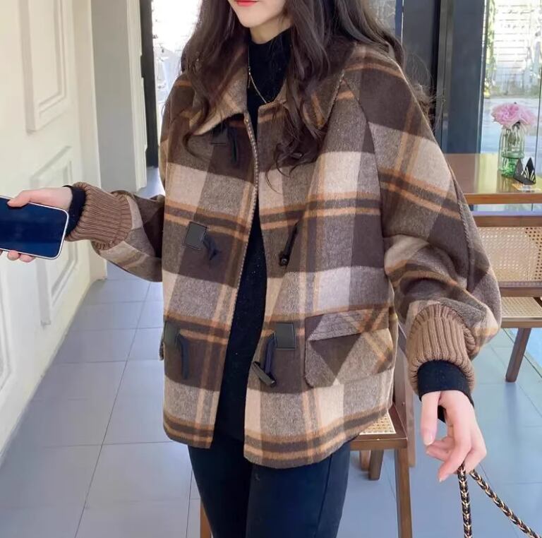 Batwing Sleeve Horn Button Wool Coat(CF183)