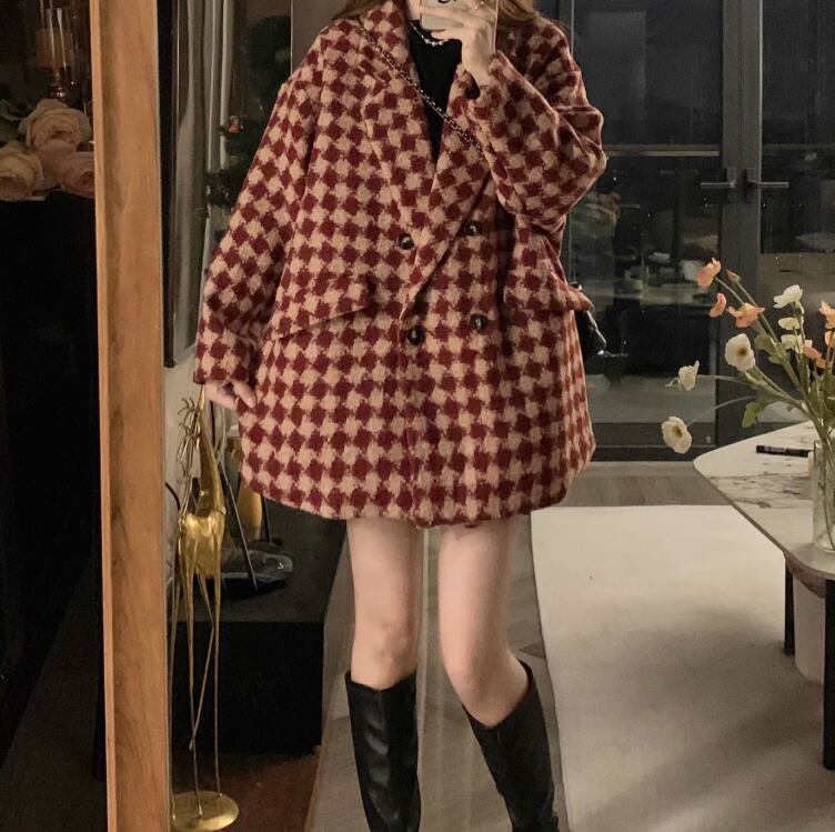 Retro Check Wool Suit Coat(CF184)