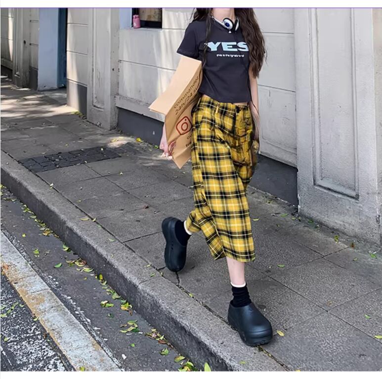 Color Block Check Pants(CF186)
